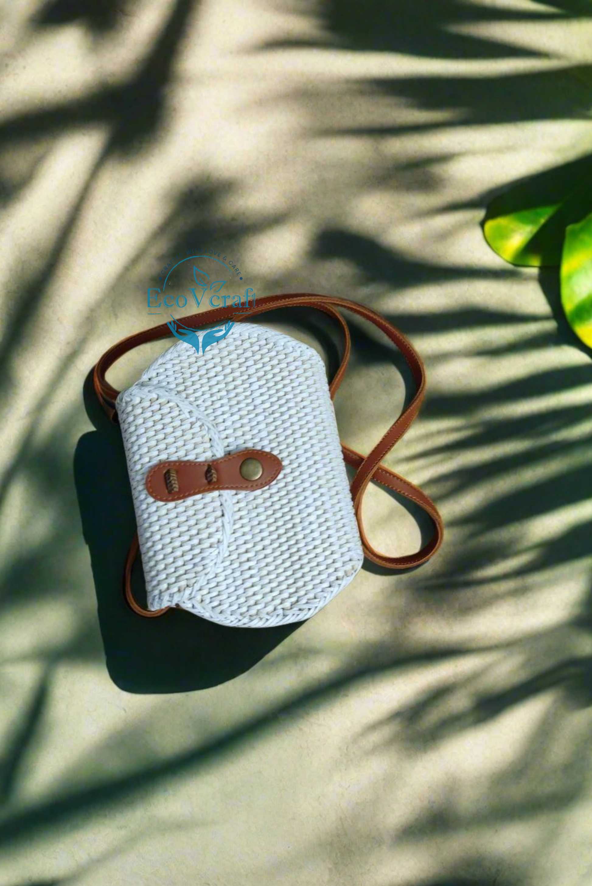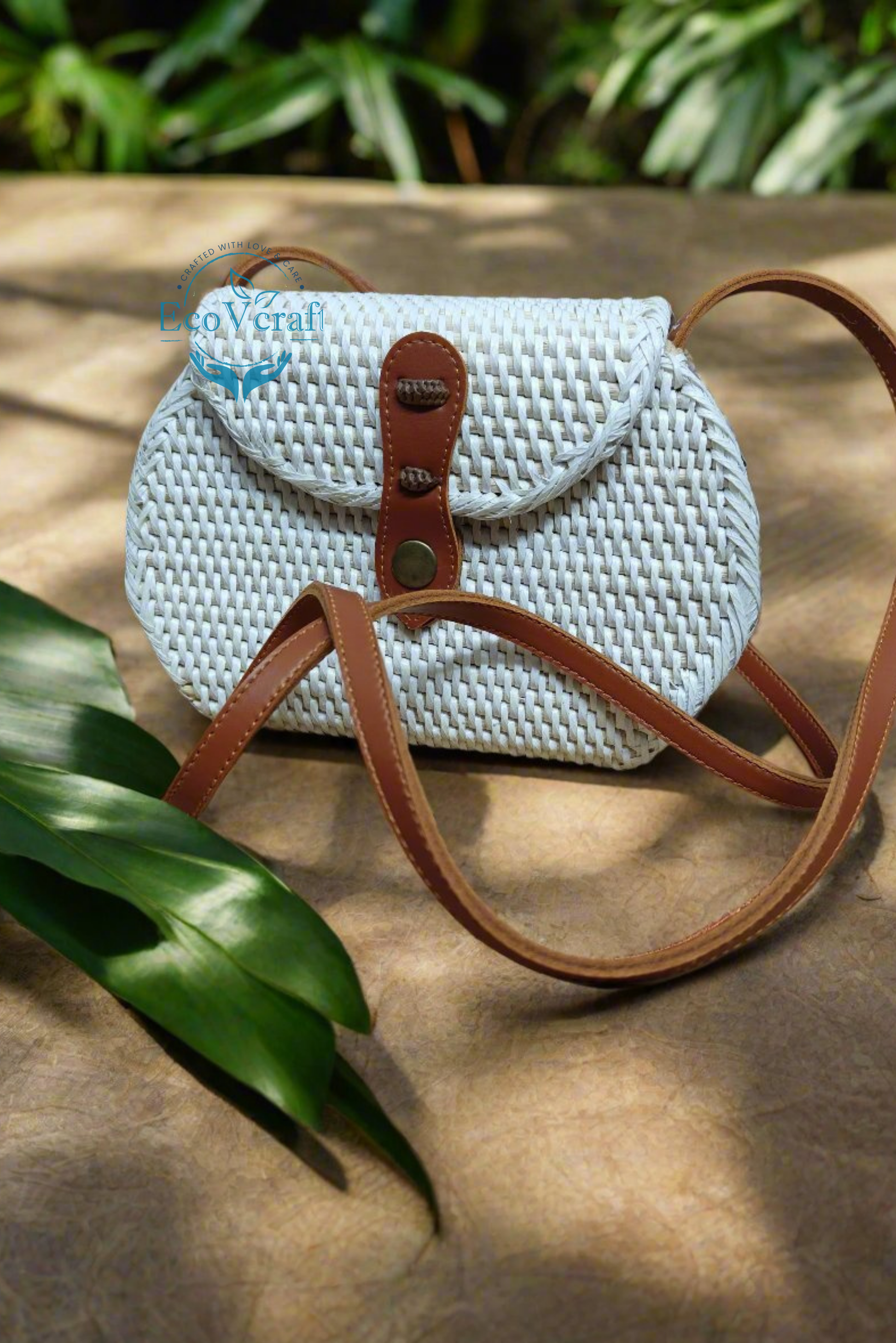 Eco-friendly Handwoven ‘U Shape White Crossbody Sling Bag' with shoulder leather strap for women is the right Sustainable staple for your wardrobe & you, so Get Set & Get this bag!