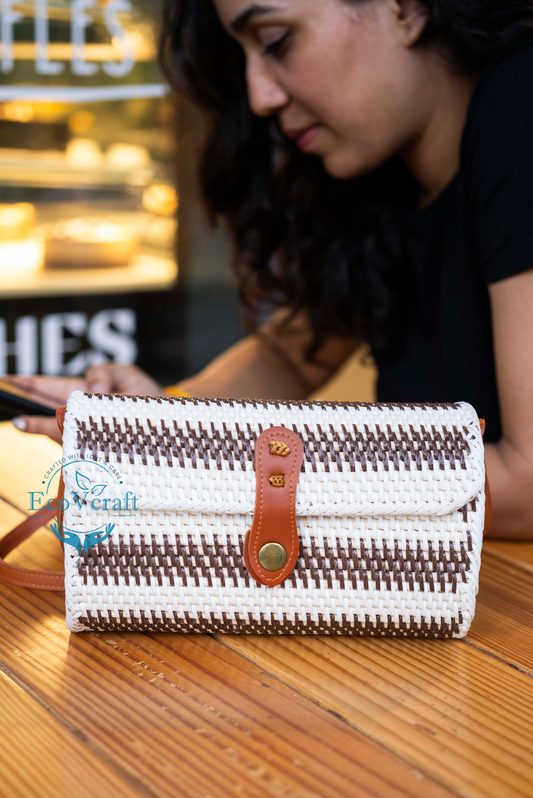 Hippie Heart White & Brown Strips Rectangular Sling Bag