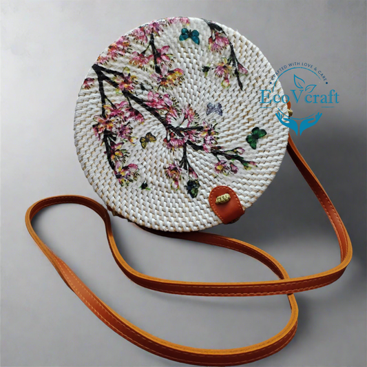 Classic Pink Flower White Triangular Crossbody Sling Bag