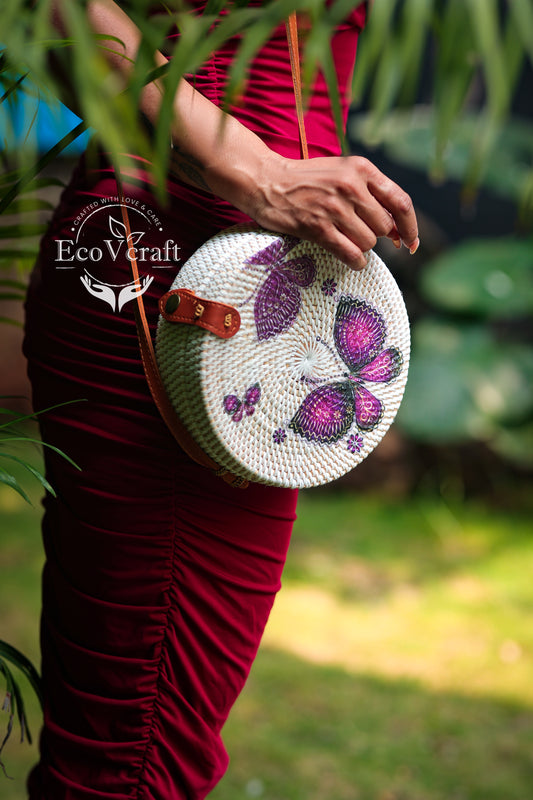 Pink Flower with Butterfly White Rectangular Sling Bag