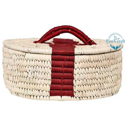 Handcrafted Sabai Grass Chapatti/Roti Box/Bread basket | Casseroles for Kitchen Dabba - Maroon & Baige
