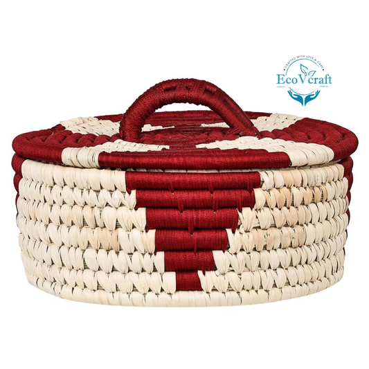 Handcrafted Sabai Grass Chapatti/Roti Box/Bread basket | Casseroles for Kitchen Dabba - Red Triangle & Baige