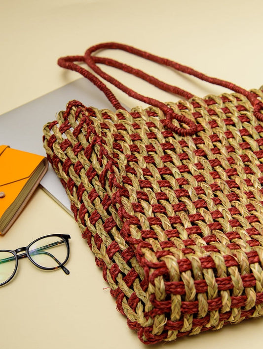 Handmade Sabai Grass Mesh Bag - Red & Natural